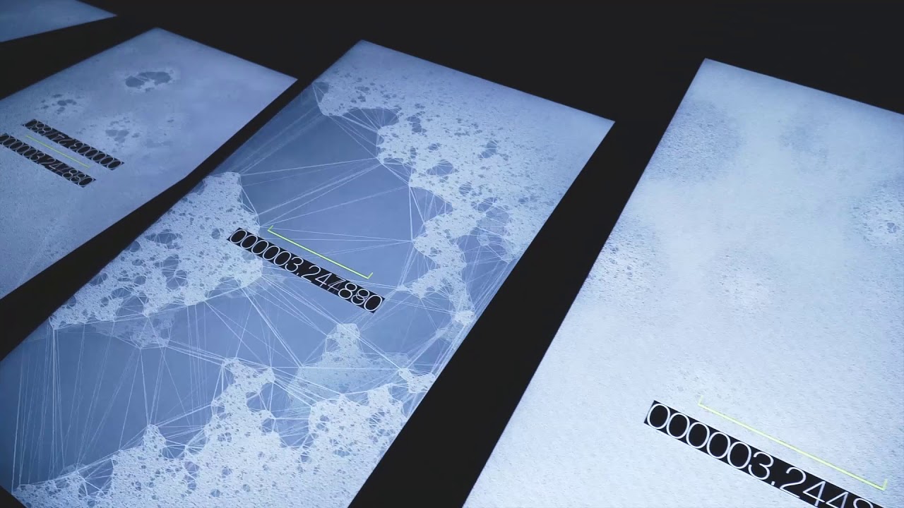 Kurokawa created the imagery and animations through a mixture of contrasting processes. He digitally reconfigured code provided by INL scientists into a series of 2D and 3D images. In contrast, Kurokawa also took images taken using INL’s electron microscopes and analysed them to find nanostructures, which were then reinterpreted to form new processes giving shape to the motion of the visuals.