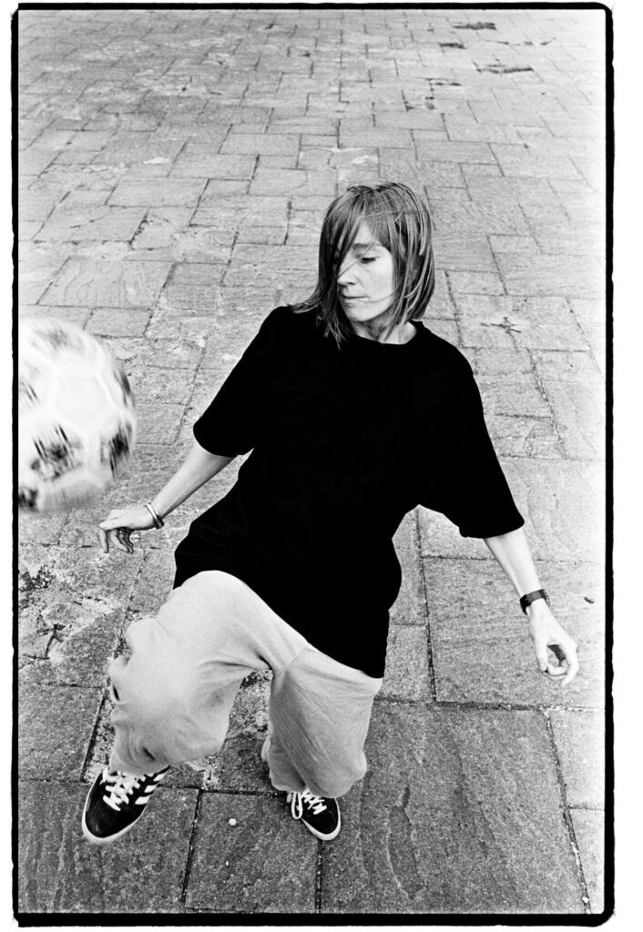 I was very, very nervous to meet them. I think the first album was out, and we were somewhere by the Thames, maybe Greenwich, and Geoff Barrow was there too, a little bit more chatty than Beth was. I was surprised she had a football with her. I was getting her to boot it straight at me so I’d get this action shot. She was very, very lovely, not what I expected. I’d heard that song, ‘Glory Box’ – “Give me a reason to be a woman” – and she’s knocking a football around. She really loved that football! I found another picture the other day of her on a yellow climbing frame. Her hair was really orange in those days. Later on I saw her at Glastonbury. She was lying on the bonnet of a sports car. I wish I’d got a picture of that!