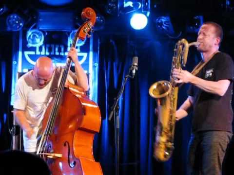 A warm August evening, 2009, and strange things are afoot in a converted church hall at the bottom of Edinburgh’s historic Grassmarket. In some freak booking accident, BBQ obsessed Scandinavian free jazz berserkers The Thing are laying waste to the city’s notoriously conservative Jazz and Blues Festival. Sweat dripping down his forehead, Mats Gustafsson grapples with his baritone saxophone, its monstrous valves belching out heavy riffs and high-pitched squalls. At his side, Ingebrit Håker Flaten wrestles with his double bass, exploring its percussive qualities as much as its harmonic range. Behind them, drummer Paal Nilssen-Love’s arms are a blur, creating a whirlwind of polyrhythms as his bass drum pounds away in a metre of its own. Out of freewheeling improvisations emerge recognisable nuggets of rock riffage: Lightning Bolt, PJ Harvey, Black Sabbath’s ‘Iron Man’. It’s riveting stuff, and far from inaccessible. It’s by no means all balls to the wall skronk: there’s an extreme dynamic range to their performance, as they work out the acoustics of the room and push their instrumental technique to the limits in search of new sounds.