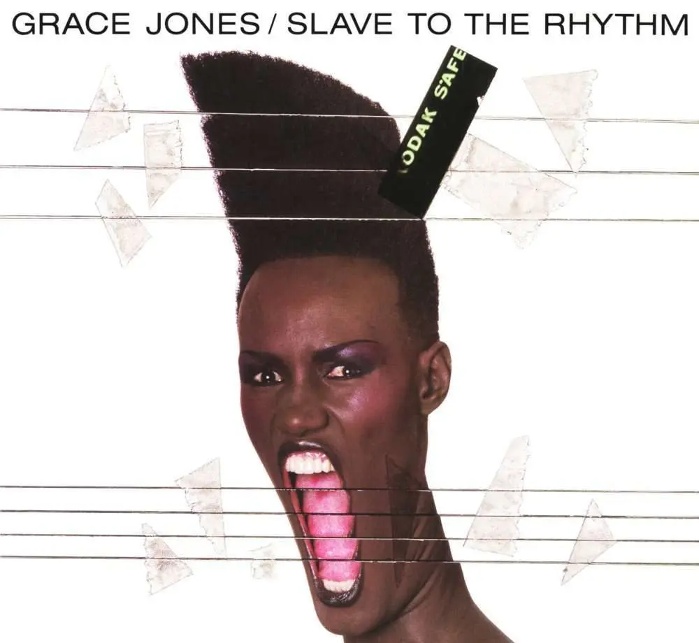 It’s been forty years since this passage was intoned at the start of ‘Jones The Rhythm’, the opener to Grace JonesSlave To The Rhythm, and it’s still no clearer how you are supposed to react to it. Not helping matters, it isn’t clear who actually wrote it. Reading recent retrospectives, it is widely attributed to Jean-Paul Goude, photographer and Jones’ former lover who is liberally quoted on the album. But this particular paragraph doesn’t appear in Goude’s book Jungle Fever, the source of other quotes. And this was a release on the ZTT label, then in its pomp following the success of Frankie Goes To Hollywood. Just as Paul Morley, journalist and ZTT co-founder/PR/jester/theorist mischievously invented quotes for Frankie on Welcome To The Pleasuredome, maybe he did the same here. ‘Jones The Rhythm’ is certainly so spectacularly pompous that it’s either taking the piss or is written by a heroically pretentious figure; maybe it is both.