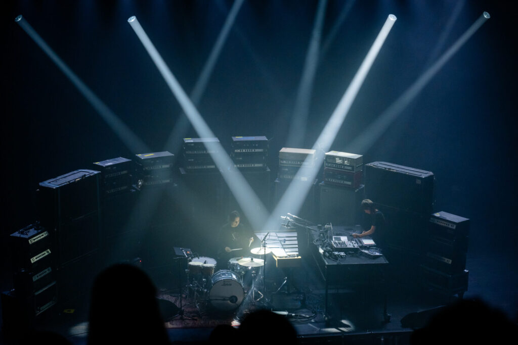 Another curator, Valentina Magaletti, serves up a wonderful show with upsammy on the opening night in Tivoli’s cavernous Ronda stage. This is a masterful display of intuition and interpretation: at times the pair sound like they’re reworking Balinese gamelan, then a passage from a Tim Hecker album. Magaletti’s drumming dovetails so well with upsammy’s catholic use of sound that it’s impossible to pick the playing apart.