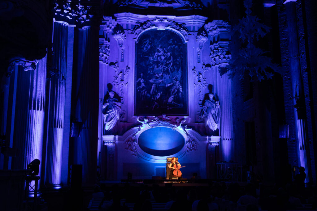 Beyond the electronic and bass heavy industrial space of the DumBO district, the early evening shows for ROBOT take place in the stunning Oratorio di San Filippo Neri, a church in the centre of Bologna. Félicia Atkinson sings in French and English amidst soothing electronic frequencies as a red light glows on the Baroque statues behind her, casting large shadows which emphasise the stillness of the space.