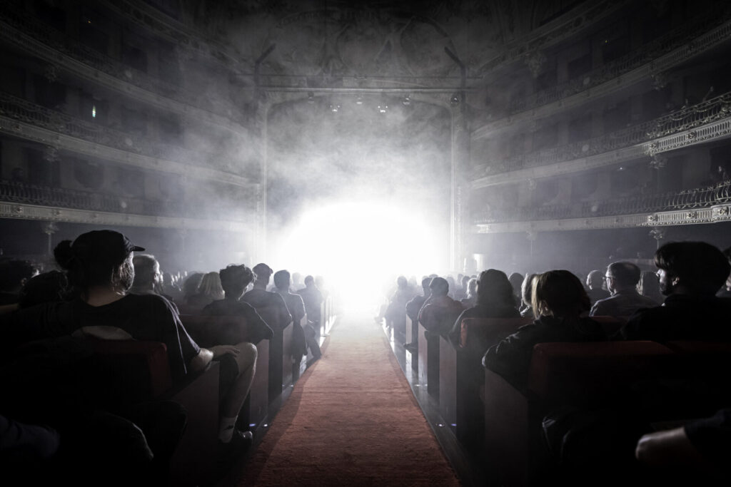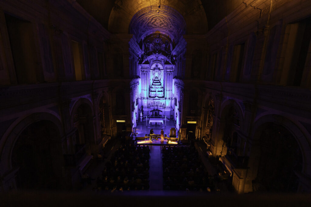 So begins the 2025 edition of Semibreve, in the organisers’ words “an exploratory electronic music festival” who place particular emphasis on site-specific performances. Braga is particularly blessed when it comes to interesting interiors; there is a chapel belonging to the town’s seminary, for instance, where the original 1940s walls enclose a modern hangar-like structure, which in turns houses a spindly wooden construction. Here, with the aid of a string quartet, Ava Rasti presents The River, a slow and meditative piece inspired by the Piave River in Italy, and the the tension between its peaceful present-day and the historic conflicts it’s been witness to. With the audience arranged to the musicians’ right and left but leaving an empty channel running through much of the space, it’s easy to imagine the waters now flowing through this curious room.