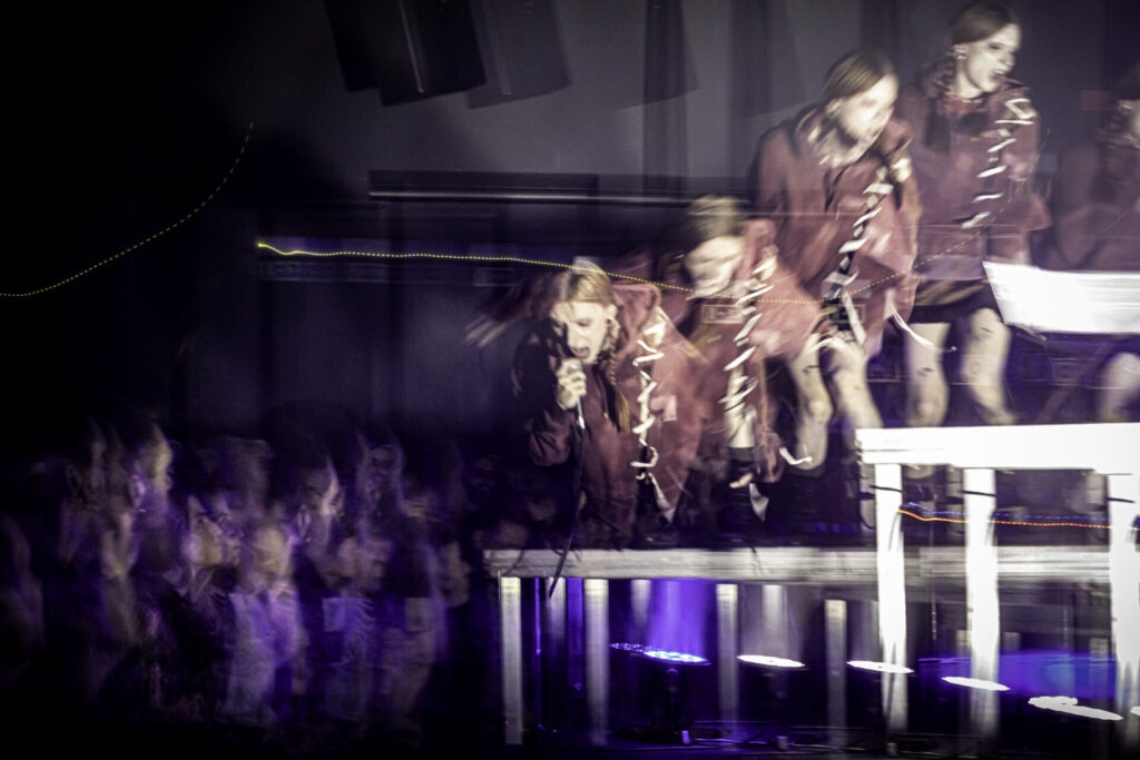 Semibreve is unabashedly intellectual in its programming. During the daylight hours they screen Susan Schuppli’s meditation on the historic complexities of the ice trade Moving Ice, host compositional listening workshops and academic lectures (lectures, not talks). It is testament to the community they’ve managed to establish over the last 14 years that no one seems to baulk at that fact. Nevertheless, all the conceptualism does occasionally threaten to become oppressive; there are only so many combinations of light and abstract noise that can be handled within a weekend. It is helpful, then, that into the late hours of Friday and Saturday the focus shifts from the Theatro to the contemporary arts space Gnration for a separate late night programme. There’s plenty to blow the cobwebs off here – thunderous solo drum-and-noise from NAH, Mike Paradinas’ performance of the manic bangers on 2024’s Grush with live psychedelic/brainrot visuals from ID:Mora, and above all a show from Aya, deep into Friday night.