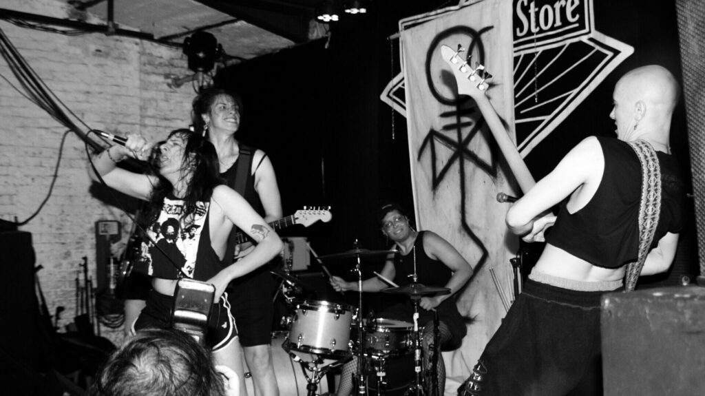 Abrasive as hardcore but slower than your average, and not anarcho punk either if you require army-jacket ratatata rhythms to tick that box (you probably shouldn’t, but hey), Happy Farm remind me a bunch of that really cool Soakie EP from six years back, which means I can also flag up some of its stated inspirations: Good Throb, Phoenix punk OGs the Feederz and Rudimentary Peni, from whom this band take their name. Vocalist Aimée’s forceful yet desperate hoarseness is a hot fit for lyrics which mix lurid doomerism, justly seditious calls to action and shafts of light in Vantablack darkness.